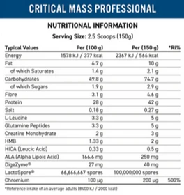 Esta combinación sinérgica de ingredientes de alta calidad hace de Critical Mass Professional el suplemento ideal para quienes buscan mejorar sus esfuerzos de construcción muscular y alcanzar el máximo rendimiento.
