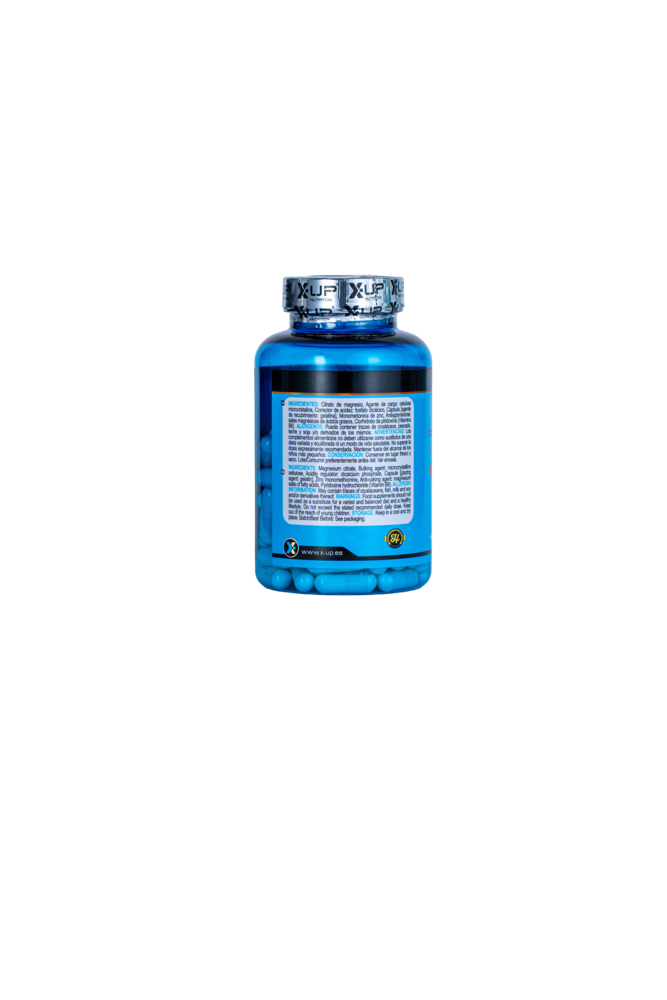 Citrato de magnesio, Agente de carga (Celulosa Microcristalina y fosfato dicalcico), Capsula Agente de recubrimiento (gelatina), Zinc Monometionina, Antiaglomerantes (sales magnésicas de ácidos grasos), Clorhidrato de piridoxina (Vitamina B6).