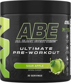 ABE (Sabor Sour Apple)Complemento alimenticio a base de citrulina malato, creatina, cafeína, beta-alanina, taurina y vitaminas. Con edulcorante.
