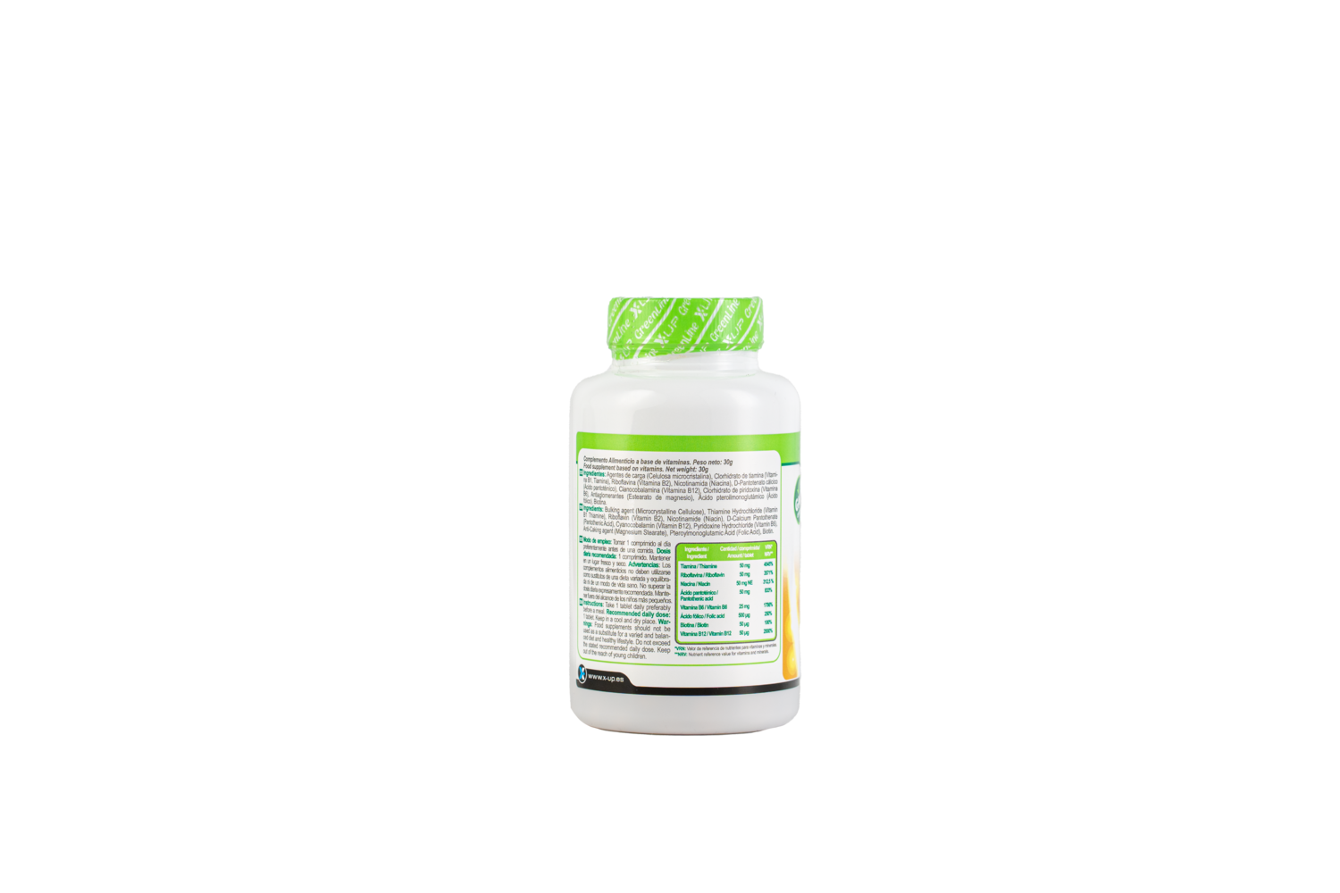El contenido de B-50 de X-UP es de tiamina (Vitamina B1), riboflavina (Vitamina B2), nicotinamina (Niacina), clorhidrato de piridoxina (Vitamina b6), ácido pantoténico, ácido fólico, biotina, cianocobalamina (Vitamina B12)