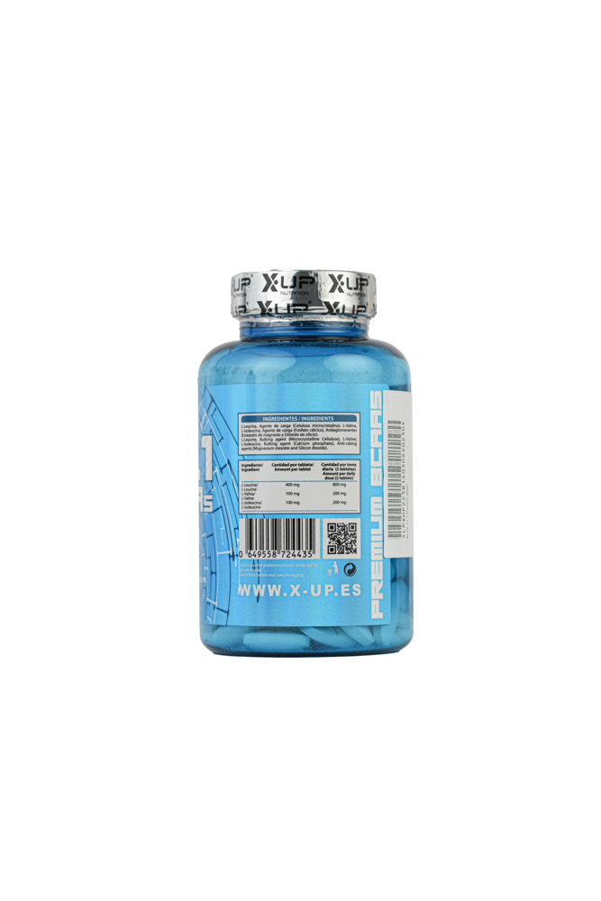L-Leucina, Agente de carga (Celulosa microcristalina), L-Valina, L-Isoleucina, Agente de carga (Fosfato cálcico), antiaglomerantes ( Esterato de magnesio y Dióxido de sicilio)