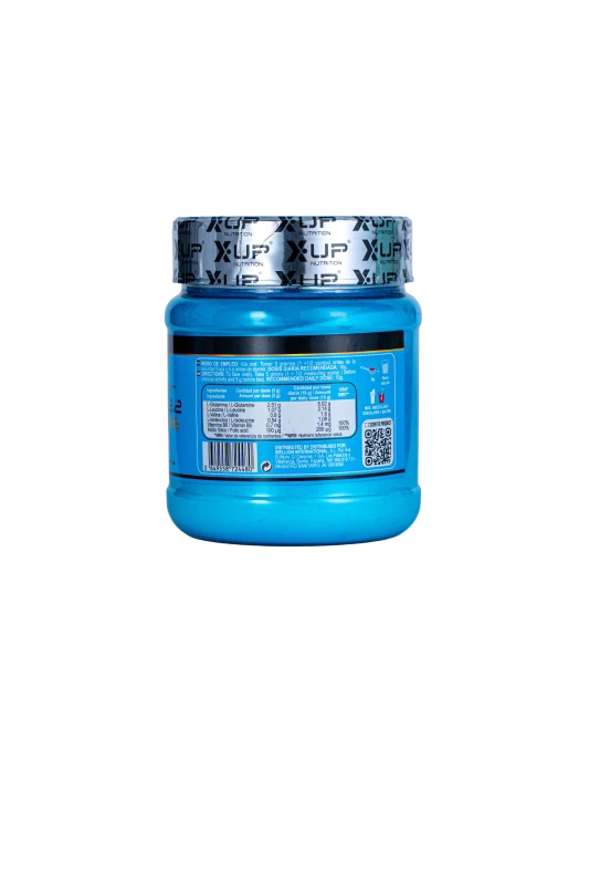 L-Glutamina, L-Leucina, L-Valina, L-Isoleucina, aroma, edulcorante (Sucralosa), colorante E-124, Clorhidrato de piridoxina (vitamina B6) y Ácido pteroilmonoglutámico (Ácido fólico).