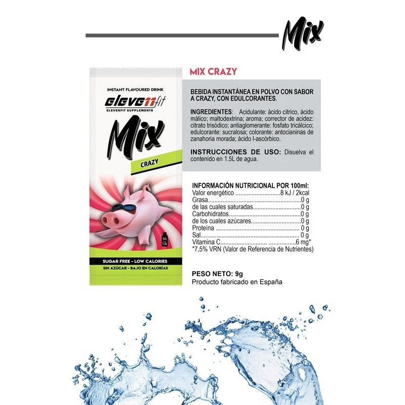 Esta caja reúne 24 sobres con un sabor Crazy, una mezcla divertida y afrutada que recuerda a gominolas dulces y frutas variadas. Un perfil aromático, vivo y muy agradable. Cada sobre rinde 1,5 litros, alcanzando 36 litros de bebida por caja. Es una alternativa ligera a los refrescos clásicos: sin azúcar, baja en calorías y con un aporte mínimo de carbohidratos.